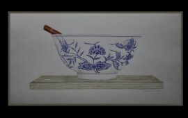 Bowl, blue and red.